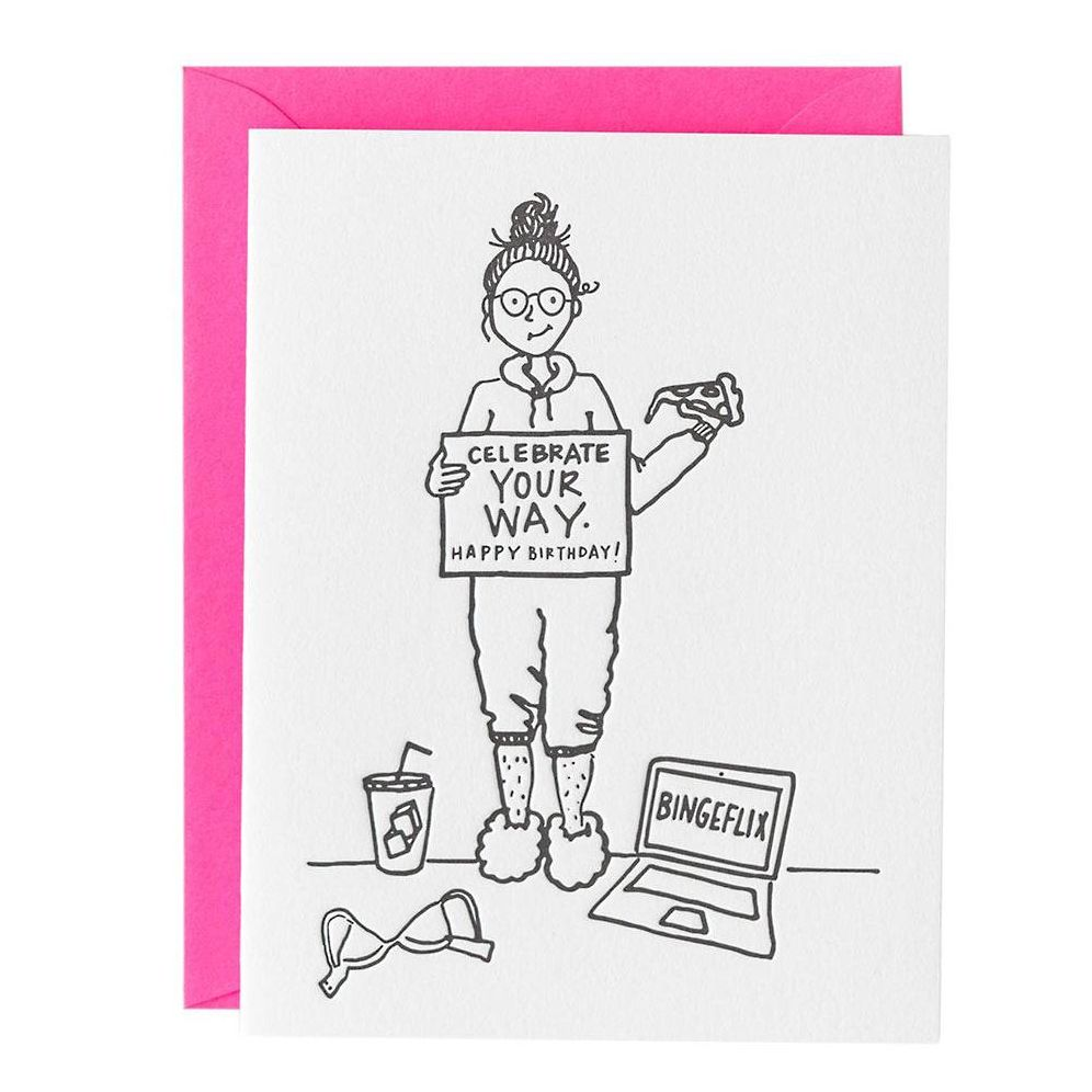 However they choose to celebrate, send a happy birthday wishes with cute letterpressed card. Blank inside. Accompanied with coordinating envelope. By Paper Epiphanies.