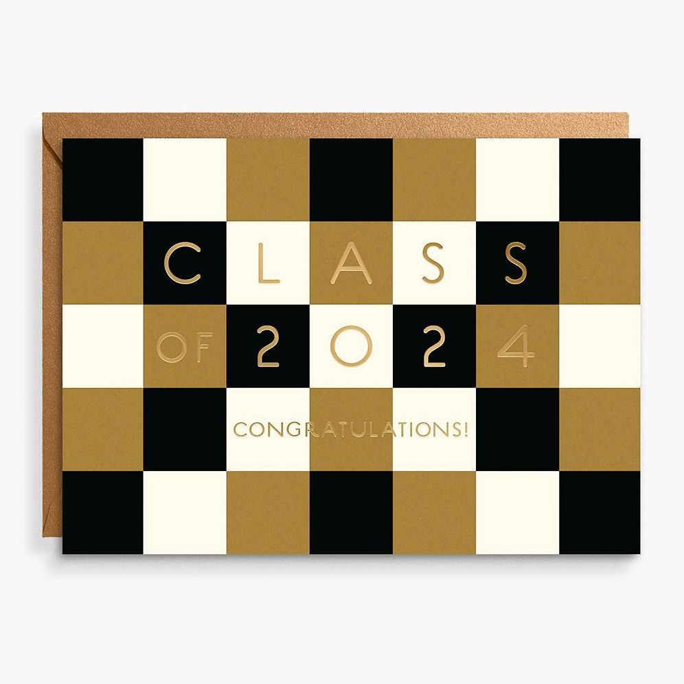 Celebrate the Class of 2024 with this card. Features fun checker design with gold foil text.