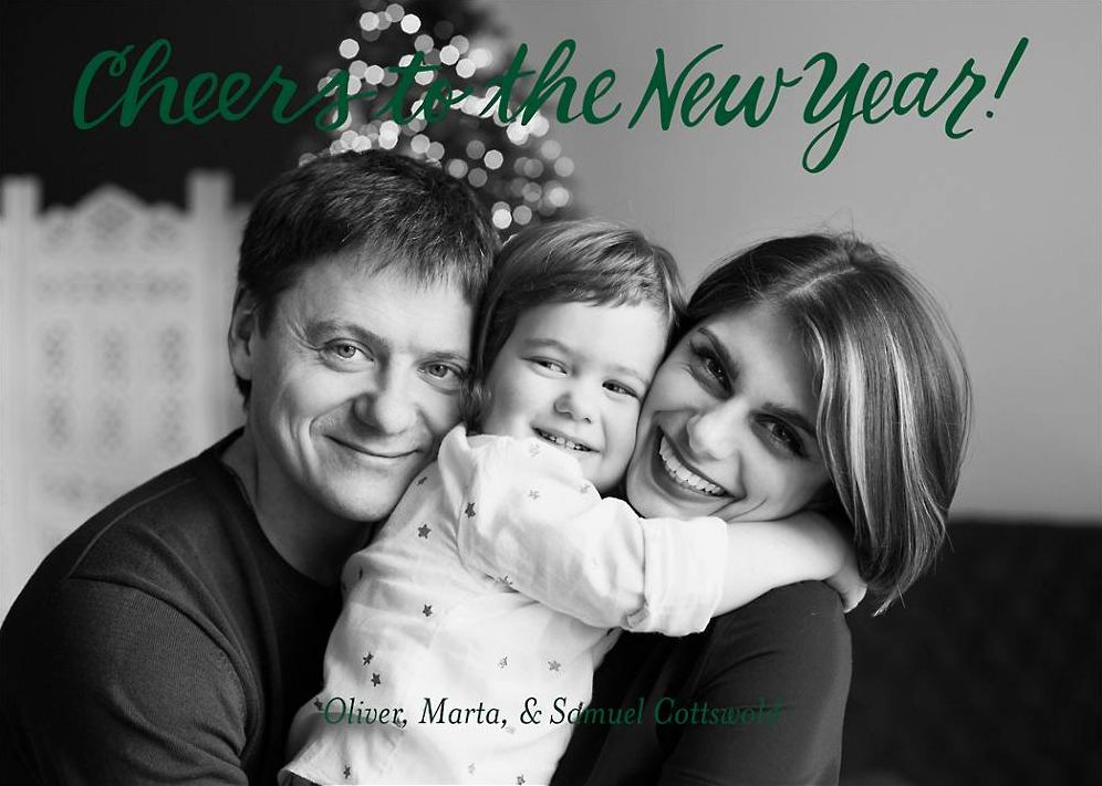 Say cheers to friends and family this new year with a customizable new year photo card.