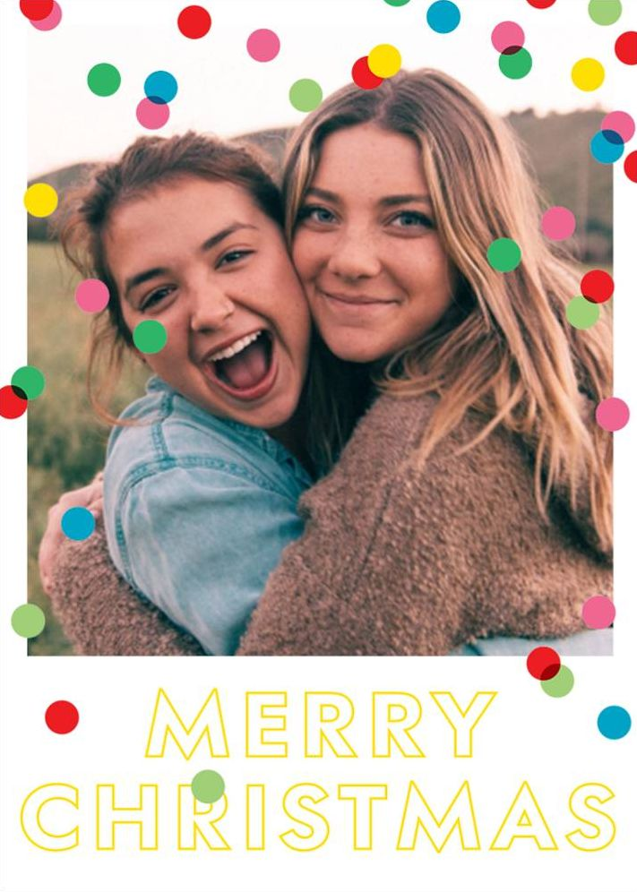 Send holiday wishes to those you love with this kate spade new york for Paperless Post holiday card design. Insert a family favorite photo of you or your children (or both!) and start spreading joy! This holiday photo card has confetti detail in vibrant colors for an added touch of fun.