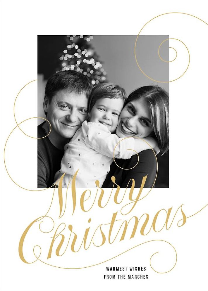 Share a merry Christmas message with this customizable curlicue photo card.