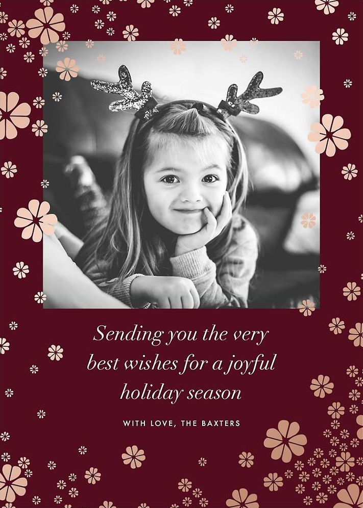 Delightful foil clovers dance across your picture adding snowflake-like feels!From the designers at kate spade new york for Paperless Post.Please note: Due to the matte finish of our paper, photos may print slightly darker than they appear on your screen.