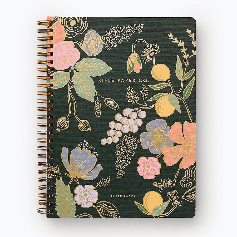 Stay organized and keep track of ideas with this softcover spiral notebook, which includes pocket folders for extra storage and features gold foil accents and 150 ruled, perforated pages.