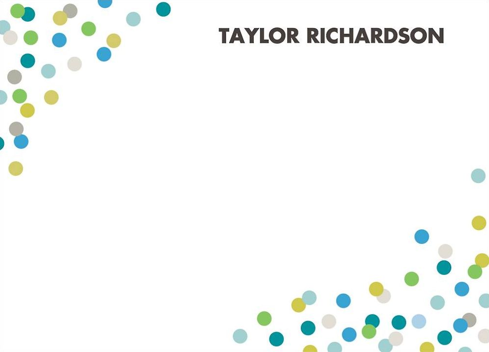 Colorful confetti creates a playful border on this festive stationery design. Fun for all ages and occasions! Printed on superfine white paper, which has a smooth finish and is soft to the touch. 130# cover weight paper with 30% post consumer recycled content.