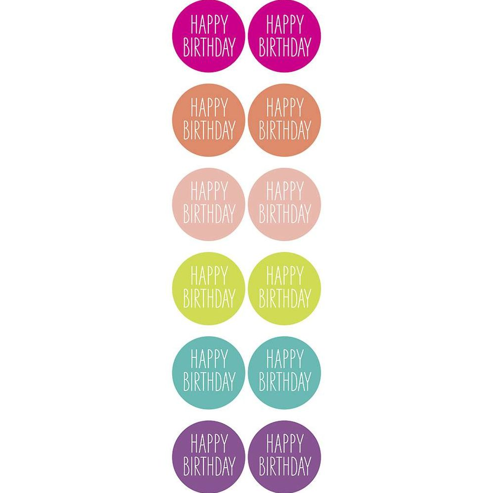 Wish someone special a colorful birthday with these circular stickers. Our exclusive colorscope is a vibrant background for a Happy Birthday message.