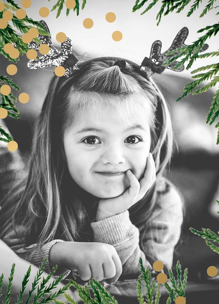 These kate spade new york for Paperless Post holiday cards with lushly bordered branches and sprinkles of gold foil confetti are perfect for framing your holiday photos to share with family and friends.
