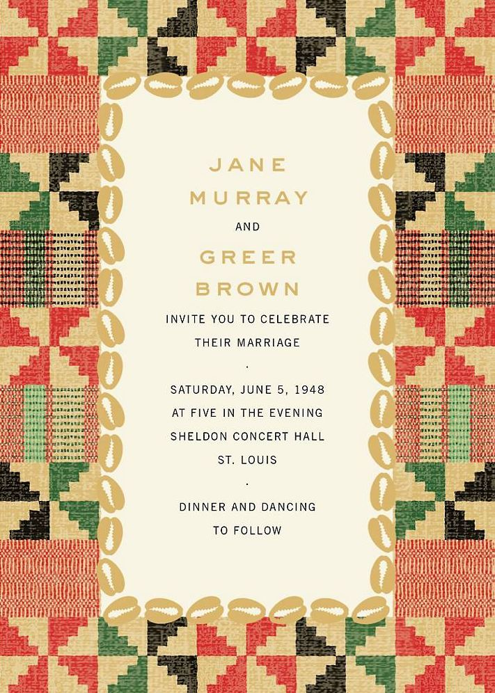The Cowrie suite by Paperless Post is sure to make an impression. A bold couple calls for a bold wedding! Printed on superfine white paper, which has a smooth finish and is soft to the touch. 130# cover weight paper with 30% post consumer recycled content.