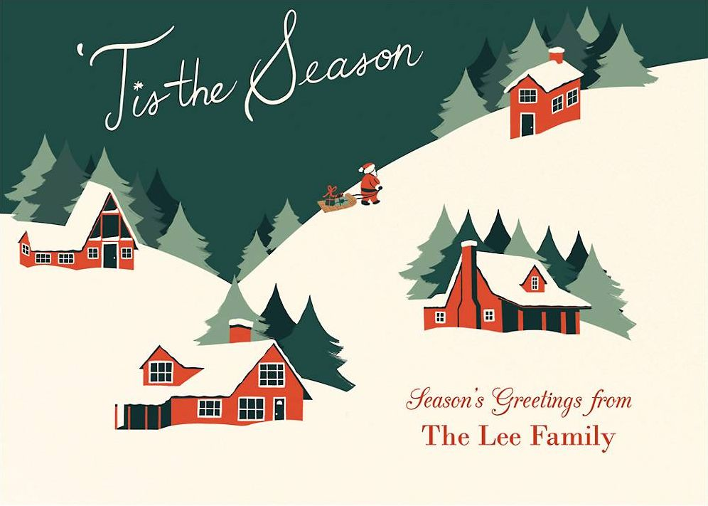 Let holiday tidings ring from home to home with this tasteful holiday card. Send a warm and loving message to friends and family with one of our unique custom holiday cards, featuring artwork created by our designers in Chicago. Printed on Mohawk ultra white 120 lb. card stock that is soft to the touch and matches our superfine white envelopes. Paper is FSC certified and made using wind power.