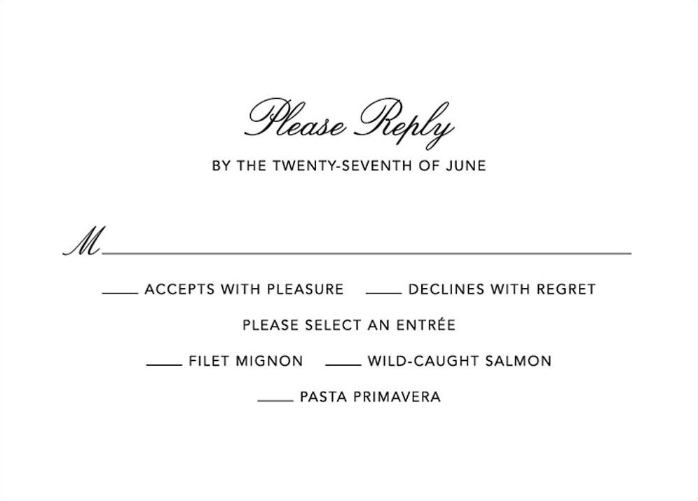 This vertical wedding response card features a field of greens and is perfect for a wholesome wedding theme, filled with love. Printed on Mohawk superfine white 100 lb. card stock that is soft to the touch and matches our superfine white envelopes. Paper is FSC certified and made using wind power. Designed by Felix Doolittle […]