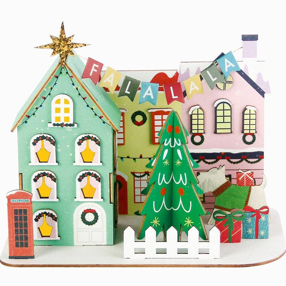 Get creative this winter with this fun and festive DIY craft kit! Featuring easy to assemble die-cut vintage-style buildings, creating a mini holiday village has never been easier or more fun! Great for holiday company or a holiday kids party!
