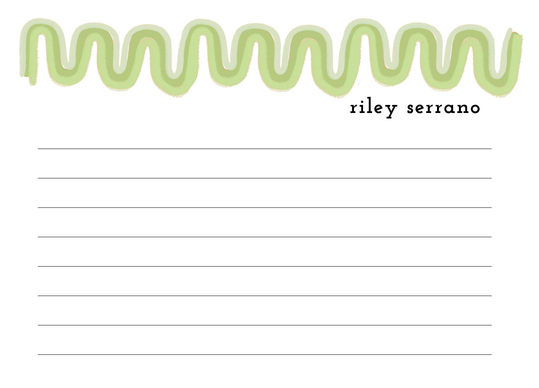 These wide-ruled stationery designs make it easy for little hands to practice good penmanship. Printed on Mohawk superfine white 130 lb. card stock that is soft to the touch and matches our superfine white envelopes. This paper is FSC certified, with 30% post consumer recycled content, and made using wind power. Ride the wave with […]