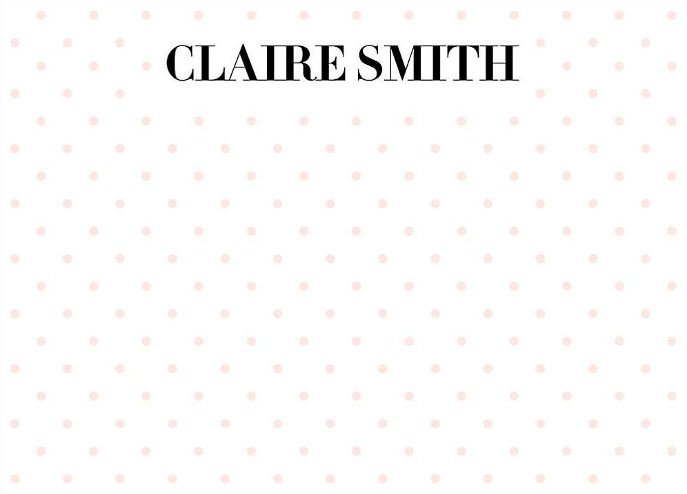 Sweet and feminine pastel polka dots create a charming contrast with your name in bold. Printed on superfine white paper, which has a smooth finish and is soft to the touch. 130# cover weight paper with 30% post consumer recycled content.