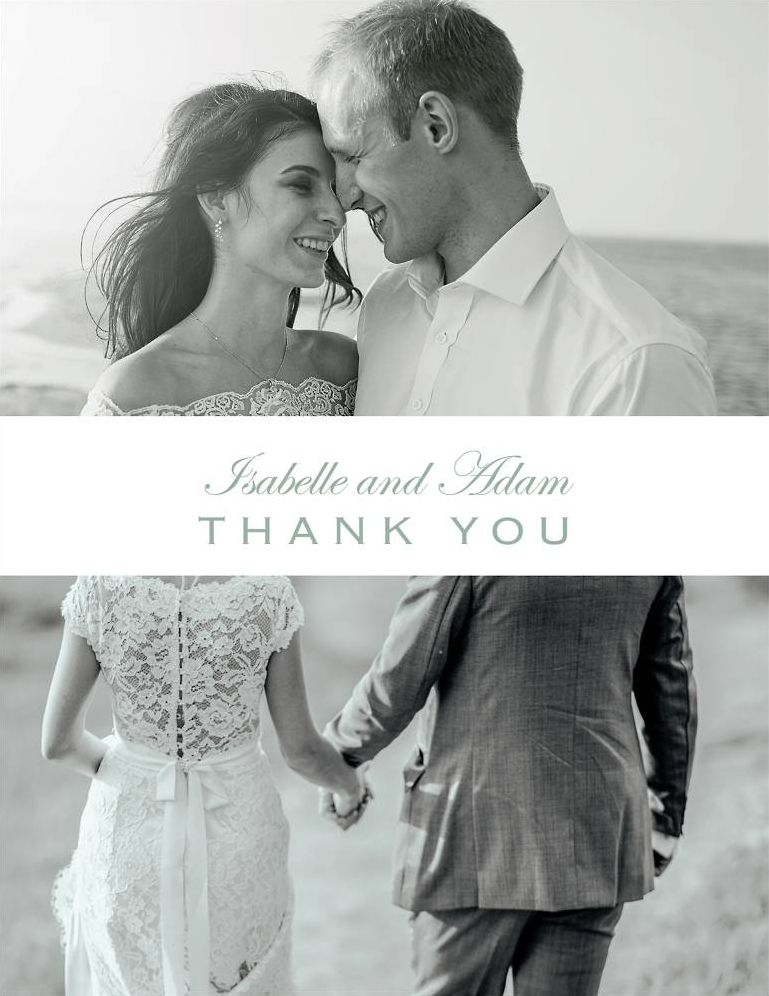 The Duet Thank You Notes feature two horizontal photos with thank you text within a white stripe across the card’s center. Created by the designers at Paper Source. Printed on Mohawk superfine white 100 lb. card stock that is soft to the touch and matches our superfine white envelopes. Paper is FSC certified and made using wind power. Cards ship flat, and are scored for easy folding.
