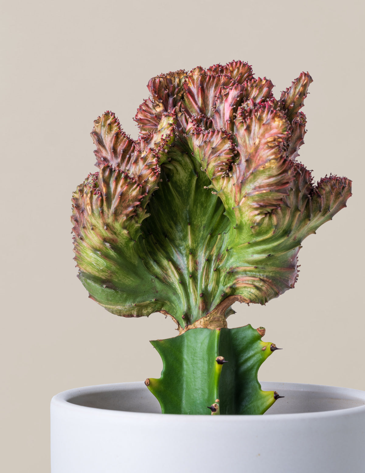 The Euphorbia Lactea Crested ‘Mermaid Tail’, also referred to as ‘Coral Cactus’, is a uniquely shaped succulent prized for its intricate, crested growth pattern that mimics the elegant tail of a mermaid. This rare cultivar thrives in bright light and is perfect for those seeking a distinctive, conversation-starting piece to their rare plant or cactus collection.