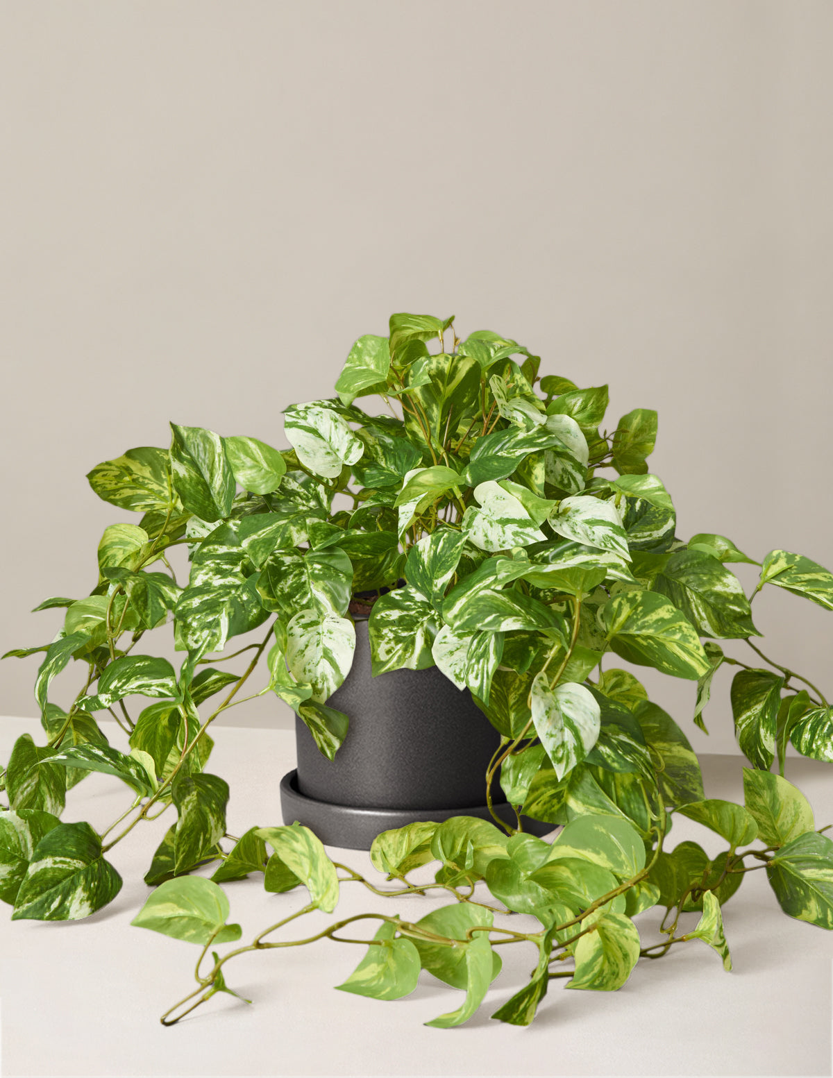 Gift the look of a healthy trailing houseplant without the chore of pruning with our artificial Pothos Plant—you have enough on your plate. Available with or without a ceramic planter.