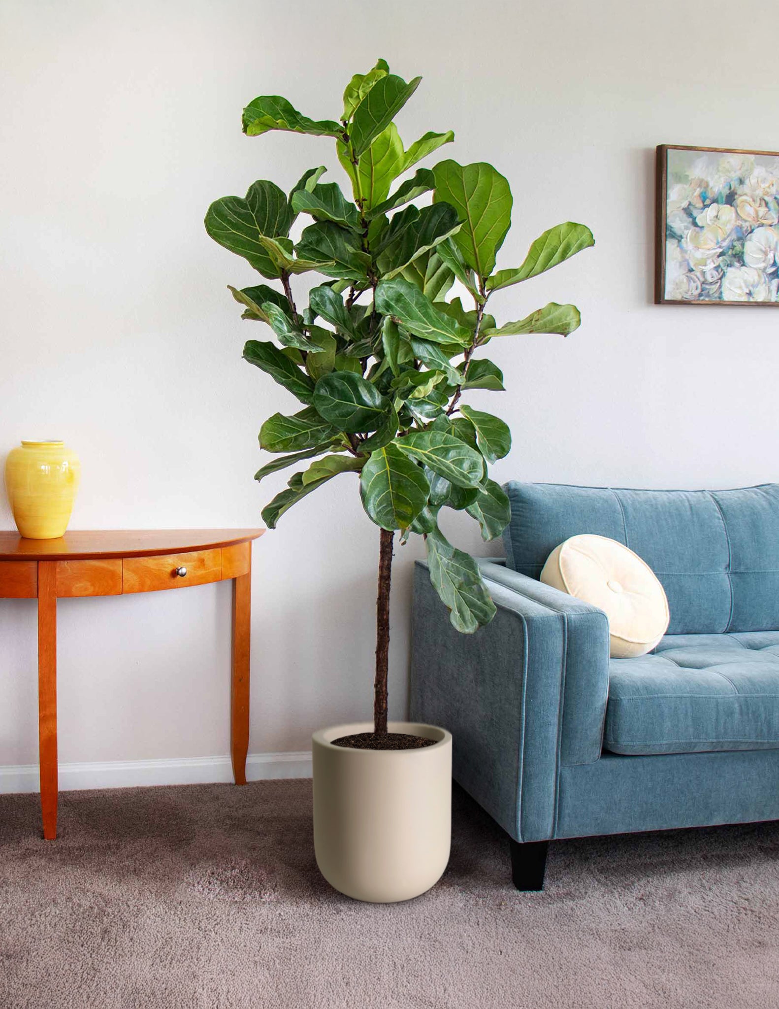 Don’t fret if you’re not a plant guru. The Fiddle-Leaf Fig is forgiving and just needs a little TLC. Keep it in well-draining soil, give it a drink when the top inch of soil is dry, and dust off those gorgeous leaves occasionally to keep them shining like the stars they are.