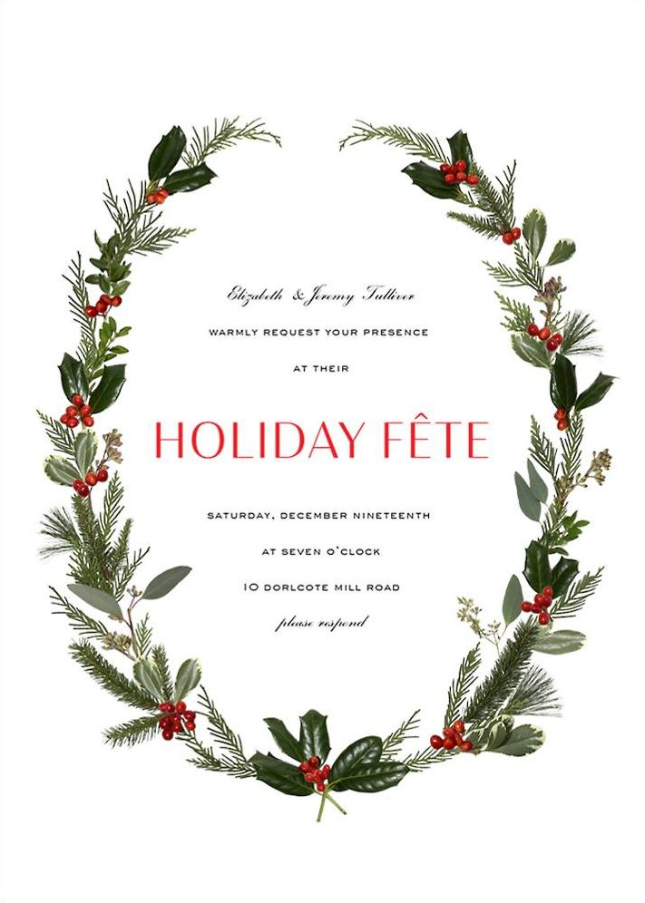 Classic florals bordering an invitation for celebration is what makes the holiday season that much more joyous. Invite those you love using this evergreen holiday card by Paperless Post.
