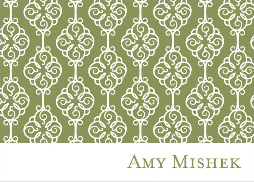 Our overall flourish pattern is feminine and modern in appeal, in a variety of our color favorites. The 4 Bar folded format offers the perfect amount of room to write on the inside.