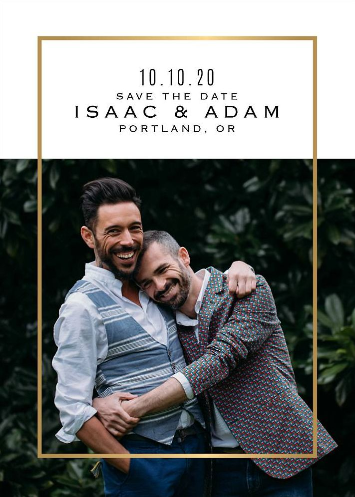 The full color Foil Line Save the Date Card will welcome loved ones with class and charisma. Created by the designers at Paper Source. Printed on bright white, ultra smooth 130 lb. card stock. Paper is FSC and SFI certified and made from 10% post-consumer recycled waste.