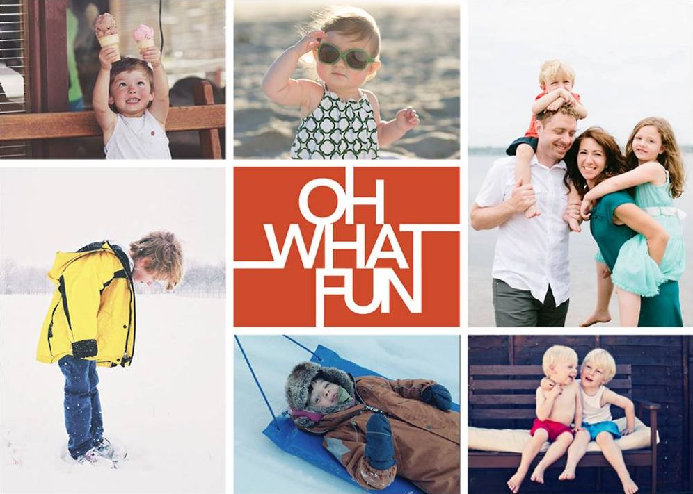 Share six of your favorite family photos on this holiday photo card by Paperless Post. The center of this card reads “Oh what fun.”