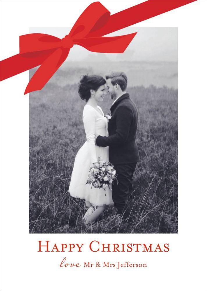 Send a personalized holiday card with a photo of you and your sweets! A red bow in the upper left corner adds the perfect holiday touch. Customize font, color and message to make it your own.