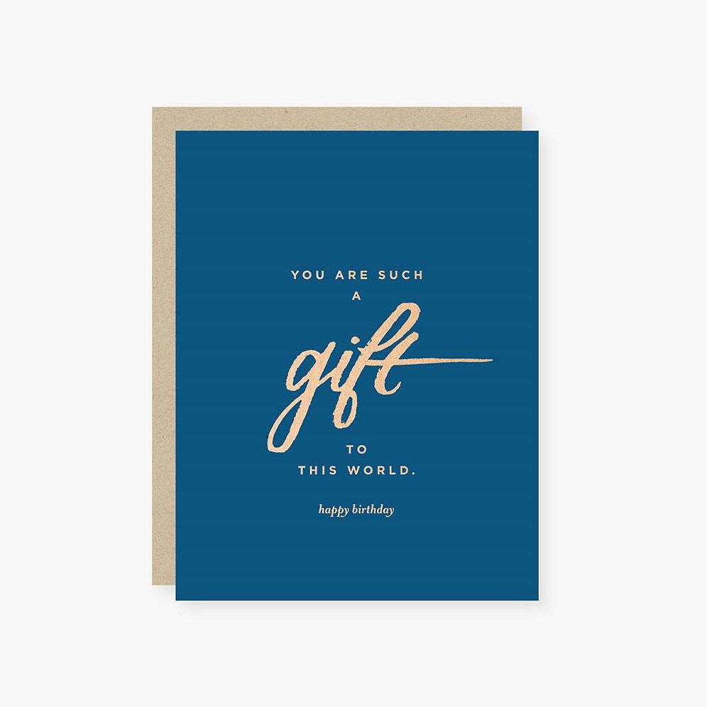‚ÄúYou are such a gift to this world. Happy Birthday.‚Äù A beautiful card to celebrate a special birthday. Printed on 130# uncoated cover with foil accents. Card is 5.5 x 4.25 inches. Blank inside – ready for you to personalize. From 2021co.