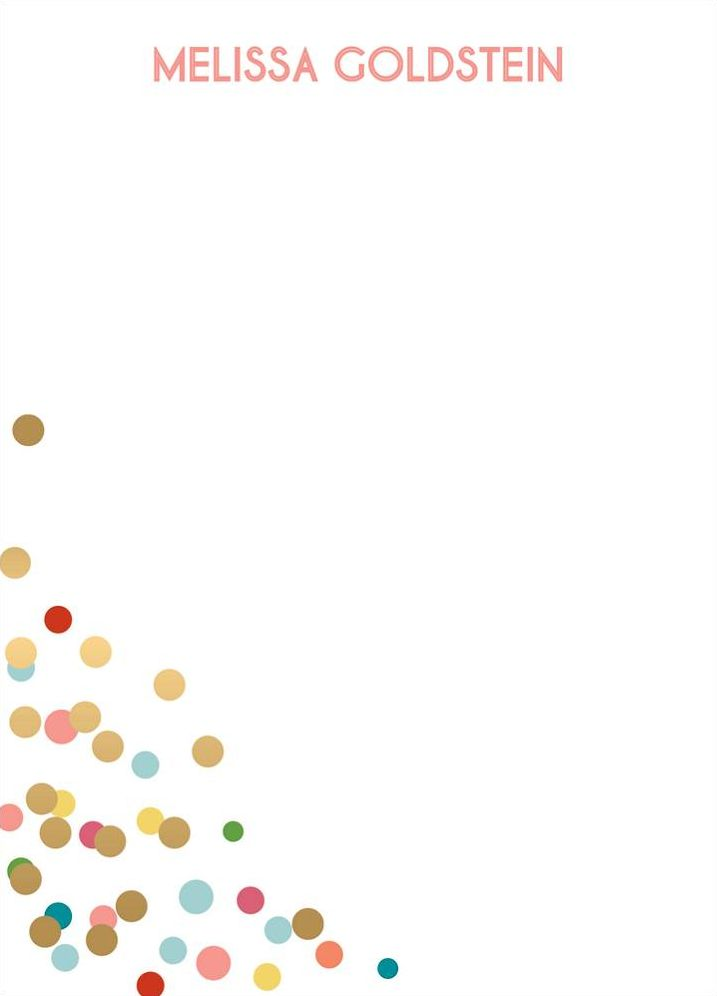 This multi color confetti is a festive addition to your stationery set! Printed on superfine white paper, which has a smooth finish and is soft to the touch. 130# cover weight paper with 30% post consumer recycled content.