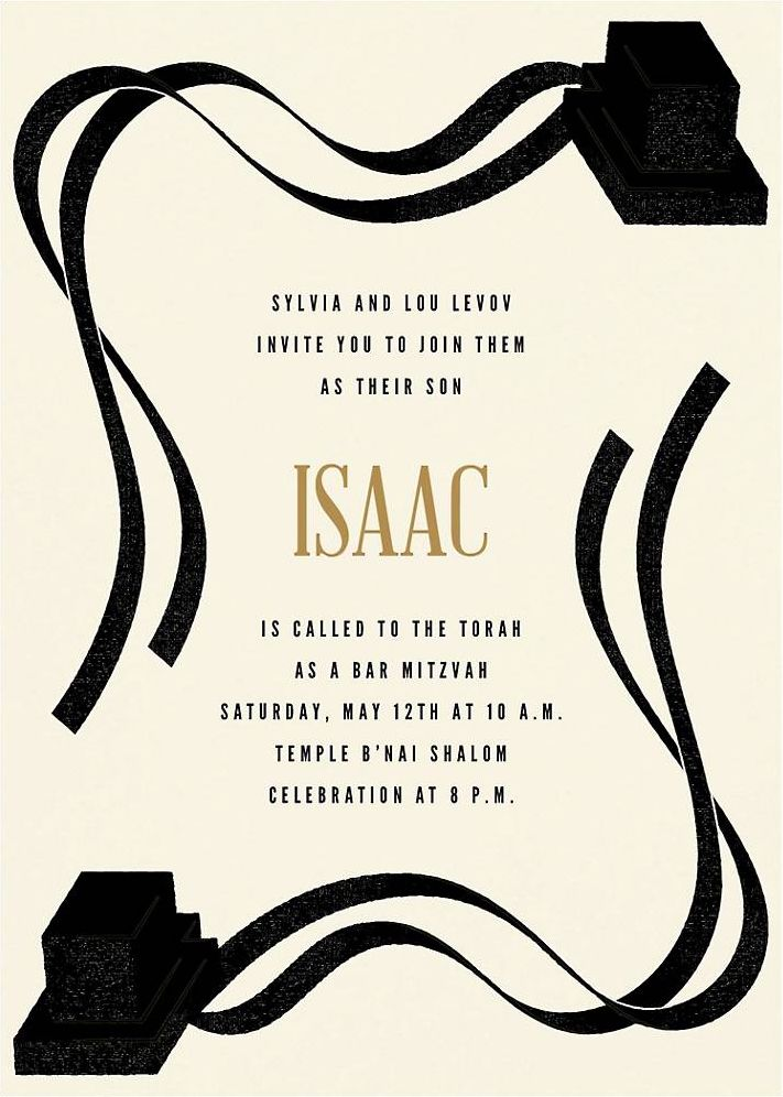 The sleek, contemporary design from Paperless Post is complemented by subtle motifs that honor your sacred milestone. Printed on Mohawk superfine white 130 lb. card stock that is soft to the touch and matches our superfine white envelopes. This paper is FSC certified, with 30% post-consumer recycled content, and made using wind power. Running low on time? You can send this design digitally with our partners at Paperless Post.