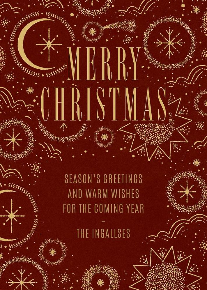Wish your loved ones a Merry Christmas with this cosmic customizable card! Printed on Mohawk ultra white 120 lb. card stock that is soft to the touch and matches our superfine white envelopes. Paper is FSC certified and made using wind power. Corresponding Paperless Post digital design also available.
