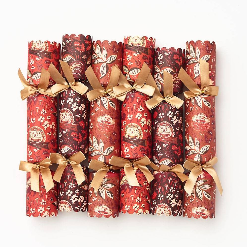 These gorgeous crackers will look stunning on your table! These each include a wood animal critter that doubles as an ornament, a crown and a joke! Set of 6.