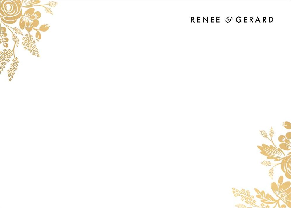Foil florals are always a go-to! This floral foil silhouette is an elegant and timeless design by Rifle Paper Co. for Paperless Post that’ll get your guests excited to be a part of your big day. Printed on Mohawk superfine white 130 lb. card stock that is soft to the touch and matches our superfine white envelopes. Paper is FSC certified and made using wind power.