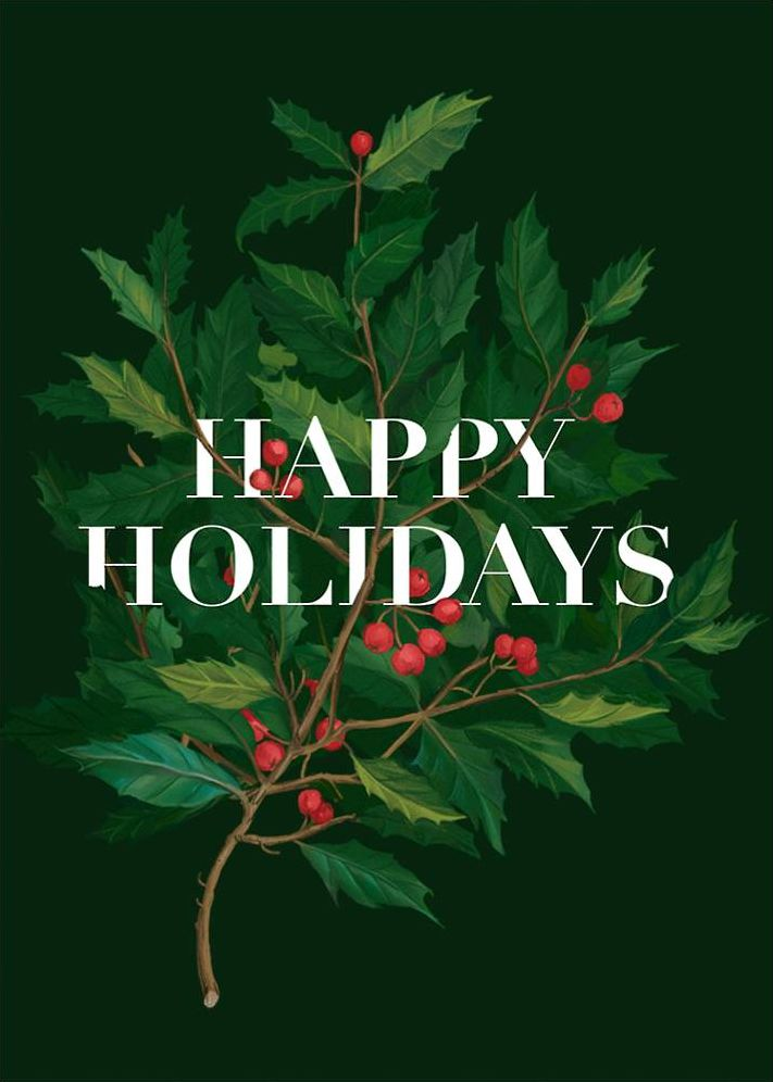 Share a sweet holiday sentiment with those you love. This personalized holiday card by Paperless Post is a classic, featuring holly branches with text overlay.