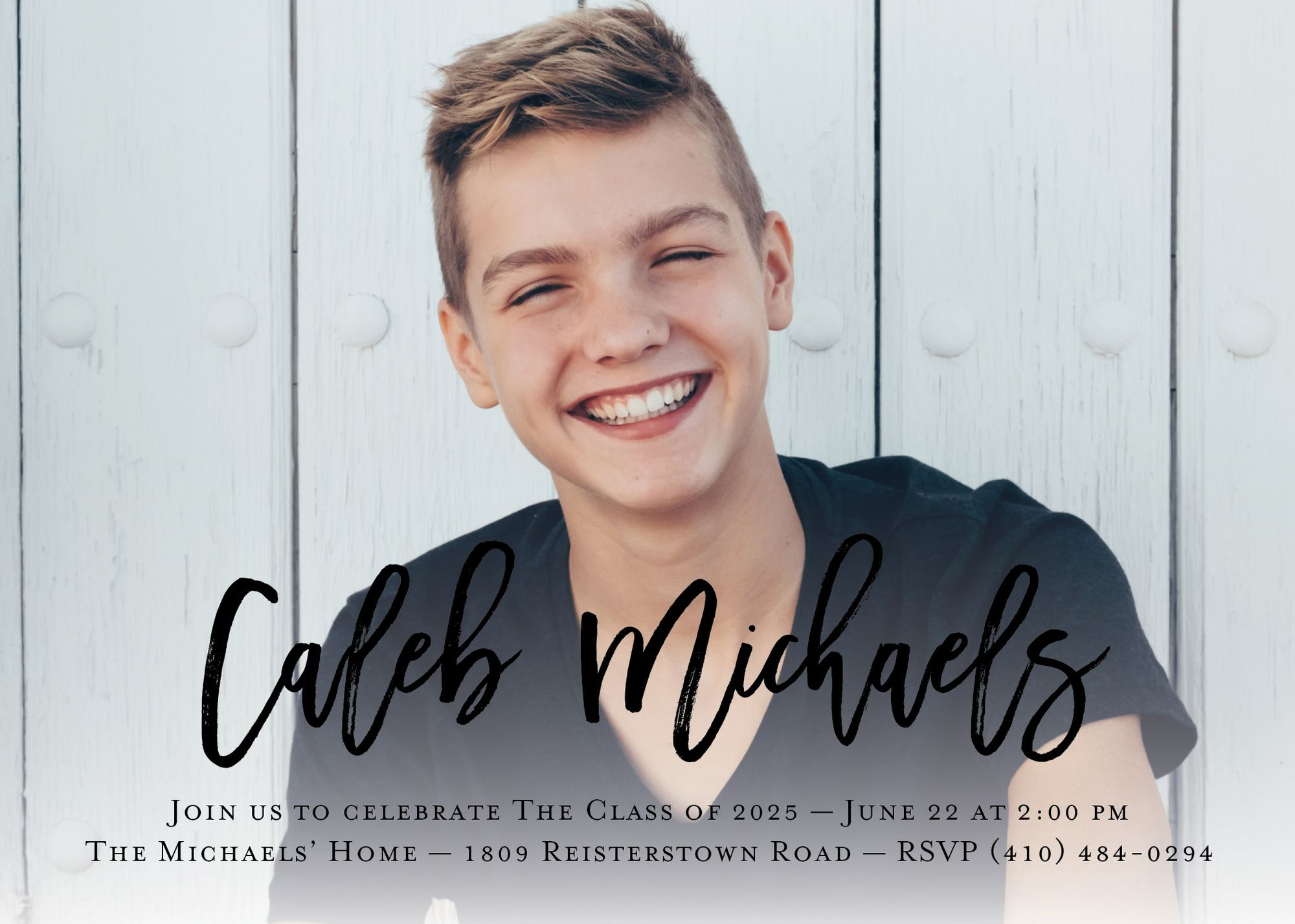 Invite everyone to the big celebration with a custom graduation invitation. Your personality shines bright when you add a favorite photo to your invitation. Horizontal invitation features a modern calligraphy font adding just the right touch of class. Printed on ultra white 120 lb. card stock that is soft to the touch and matches our superfine white envelopes. Paper is FSC certified and made using wind power.