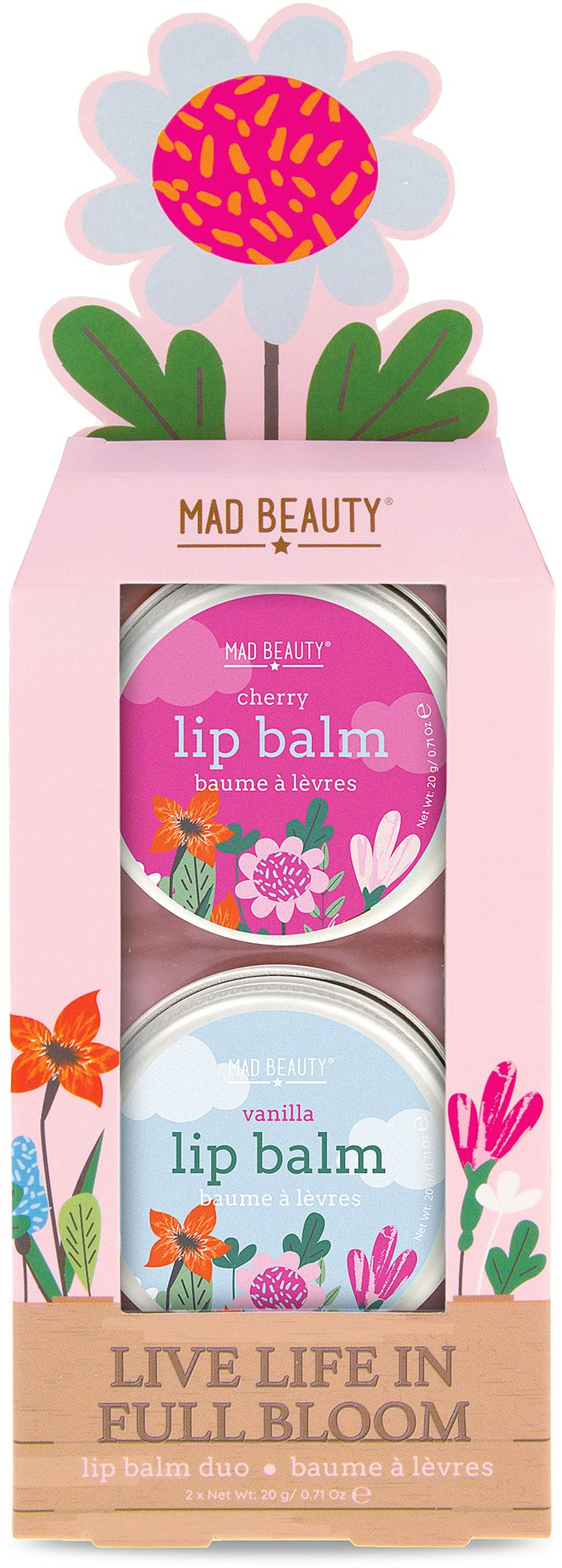 Live life in full bloom with our delightful, giftable floral bath and body range, capturing the essence of an English country garden on a summer’s day.Two handy floral lip balm tins in cherry and vanilla fragrances, in a garden inspired pop up gift box.