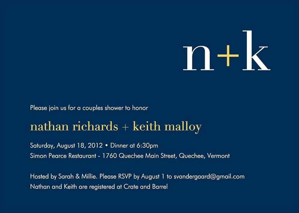 Here’s to the happy couple! Celebrate their pending nuptials with this modern couples shower invitation that pairs simple lettering with bold color for a perfect match. Printed on white 130 lb cover paper with a tactile vellum finish. 100% post-consumer waste, FSC certified.