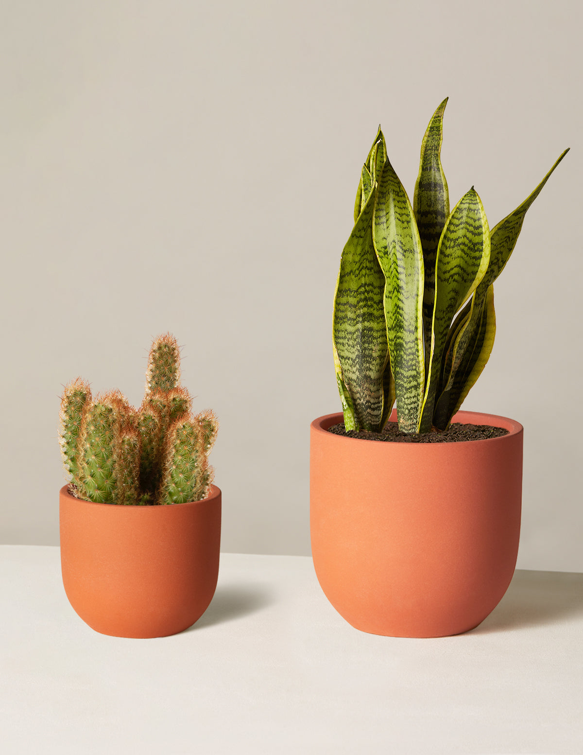 Enjoy two of our favorite colorful plants: the hardy Ladyfinger Cactus and the drought-tolerant Snake Plant, the perfect low-maintenance combo for the plant parent on the go. Their unique silhouettes and height make them our go-to picks for upgrading any space.