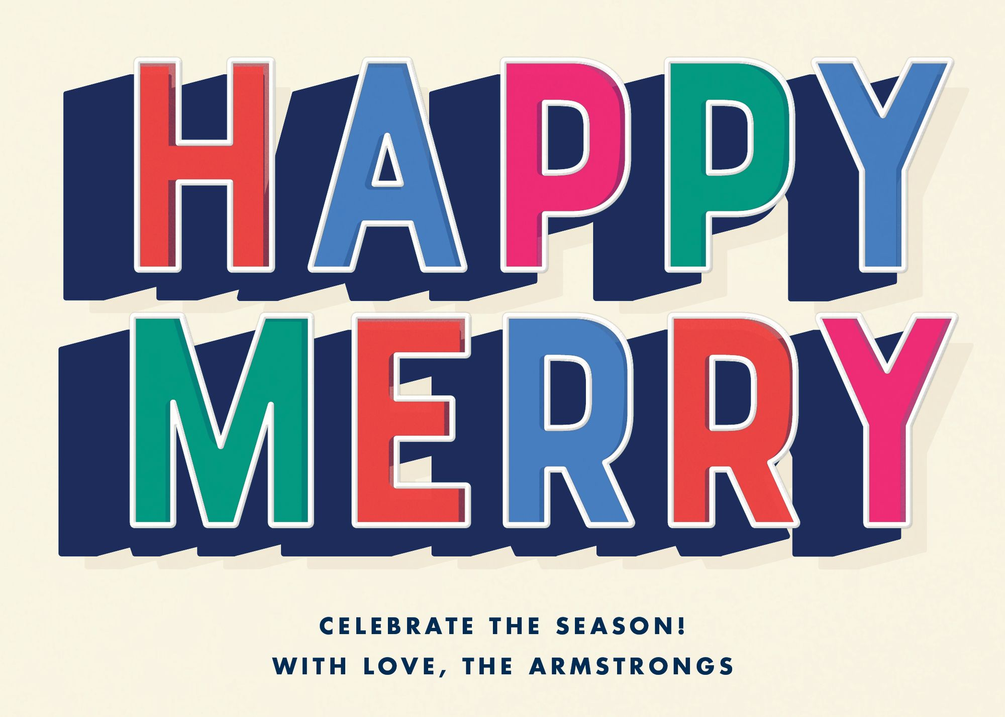 Send happy and merry wishes to your loved ones with this design from Cheree Berry for Paperless Post. Printed on Mohawk ultra white, 120 lb. card stock that is soft to the touch and matches our superfine white envelopes. Paper is FSC certified and made using wind power.