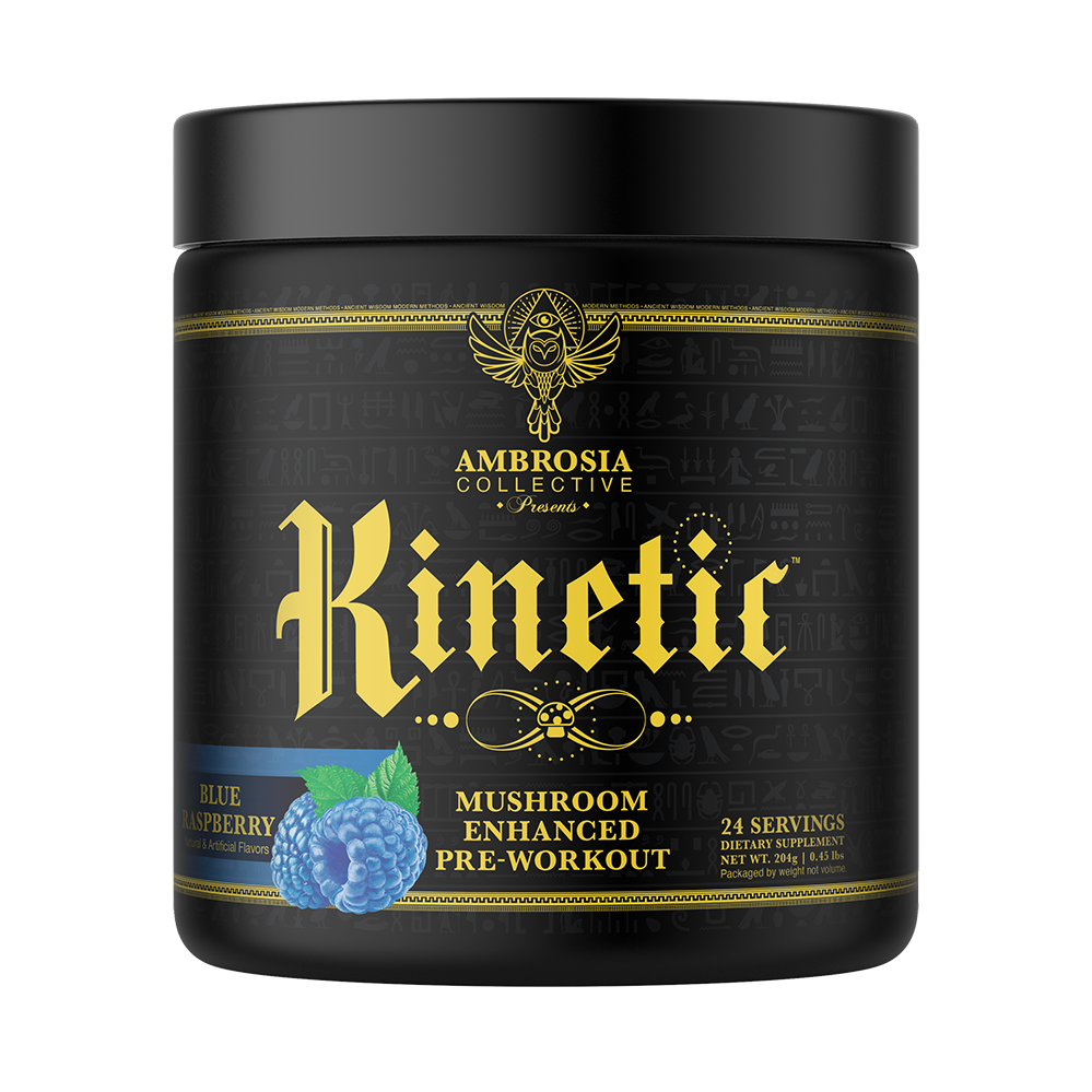 The Ambrosia Collective delivers a truly innovative Mushroom-Enhanced Pre Workout formula with Kinetic™. This powerful pre-workout/nootropic will deliver sustained energy, a sense of hyperfocus, and power you didn’t realize you had. Feel the difference with Kinetic™