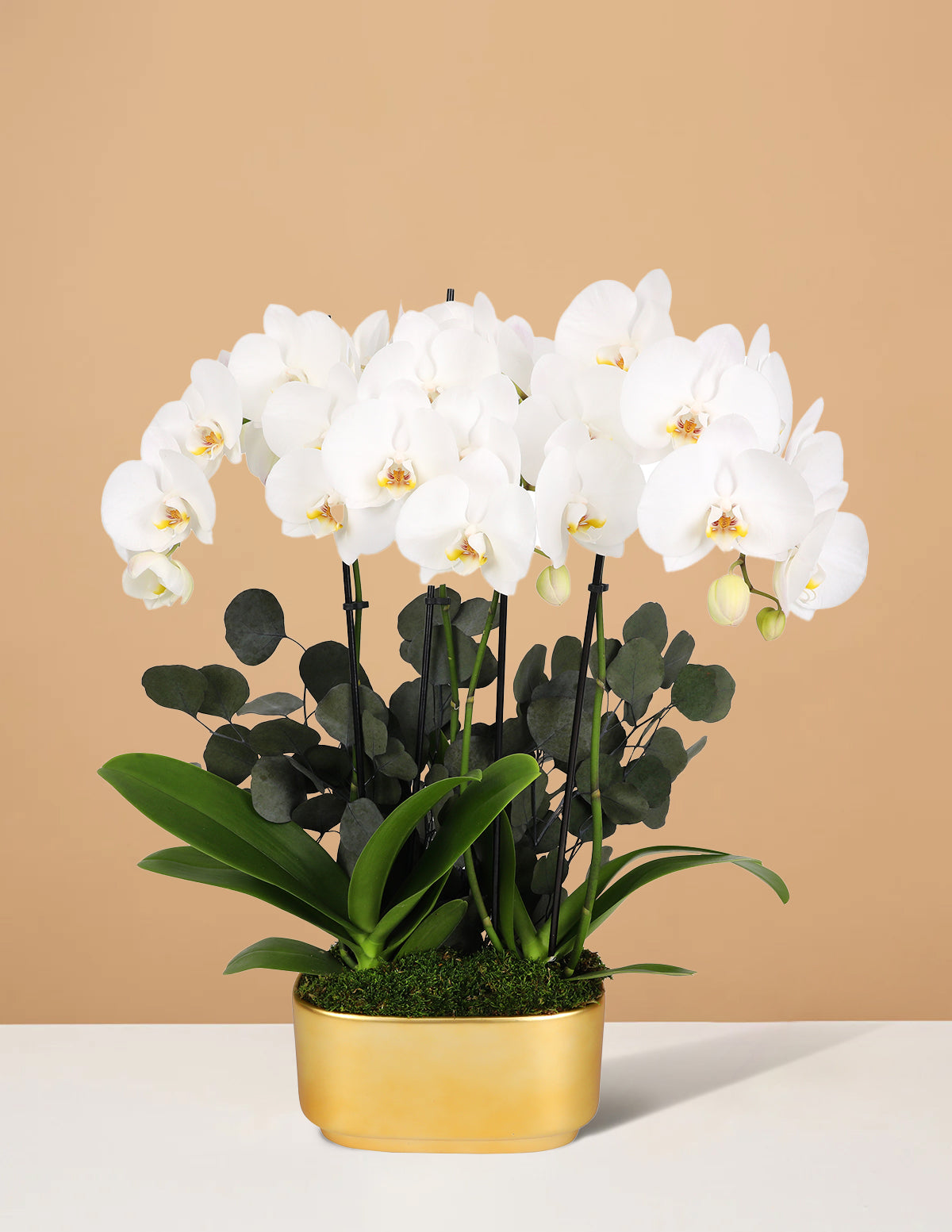 Looking for a Valentine’s Day gift that lasts far beyond the usual bouquet? Our Large Double Orchid is the perfect alternative, featuring two stunning orchid stems and the option to include fragrant eucalyptus stems. This thoughtful gift is available in a variety of bloom colors to suit every personality from white, purple, burnt orange, gold, and sky blue!