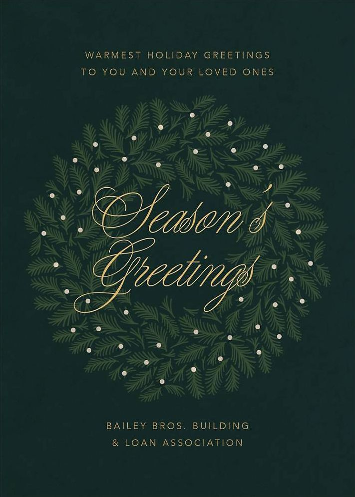 A classic wreath meets modern design on this elegant holiday card. Printed on Mohawk 120.0 lb Superfine Ultra White. This paper is FSC certified, with 30% post consumer recycled content, and made using wind power. Looking for something speedier than snail mail? You can send this design digitally with our partners at Paperless Post.