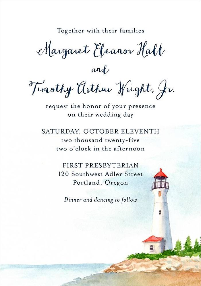 A serene lighthouse and calm seas surround your wedding details on the Lighthouse Wedding Invitation, featuring art created in-house by the designers at Paper Source. Printed on Mohawk superfine white 130 lb. card stock that is soft to the touch and matches our superfine white envelopes. Paper is FSC certified and made using wind power.