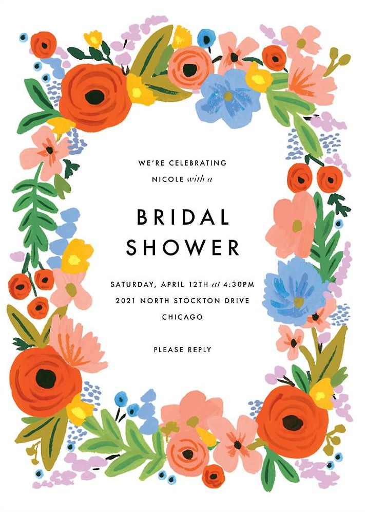 The Mayday Bouquet Bridal Shower Invitation features bright and colorful blooms encircling your details—a fun, celebratory card to get your invited guests in the showering spirit. Designed by Rifle Paper Co. for Paperless Post. Printed on Mohawk superfine white 130 lb. card stock that is soft to the touch and matches our superfine white envelopes. Paper is FSC certified and made using wind power. Corresponding Paperless Post digital design also available.