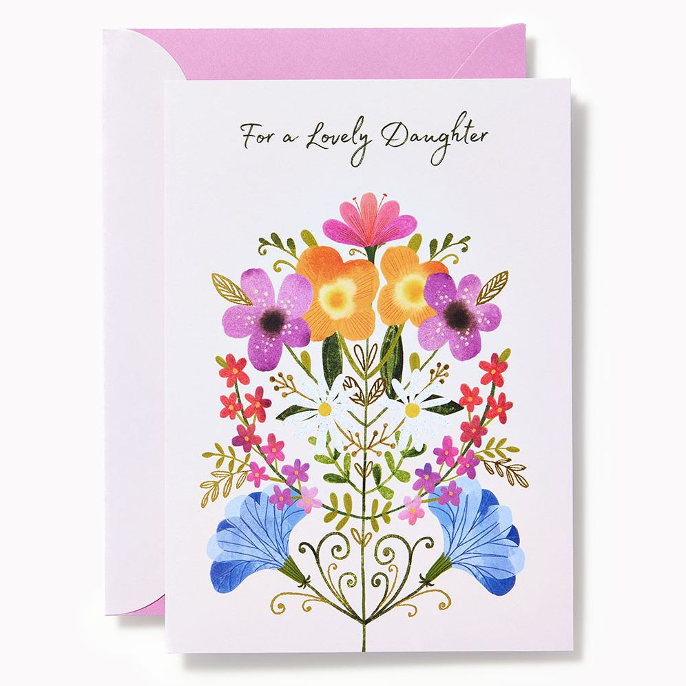 Our Mother’s Day “”Daughter”” Card celebrates the special bond between a mother and daughter. This vibrant and colorful card, adorned with beautiful floral designs, features luxurious embossing, glitter, and Spot UV treatments. Created by one of our talented in-house artists, it’s the perfect way to show love and appreciation.