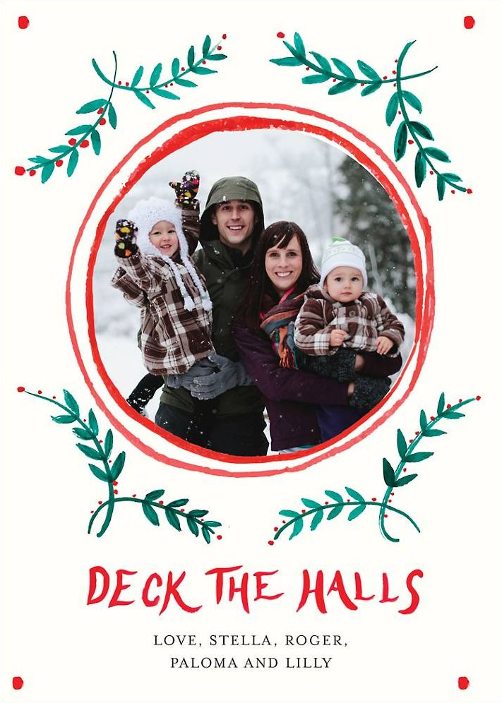 Merry boughs of holly deck the front of this charming holiday photo card featuring your family’s favorite picture. Designed by Cheree Berry for Paperless Post.