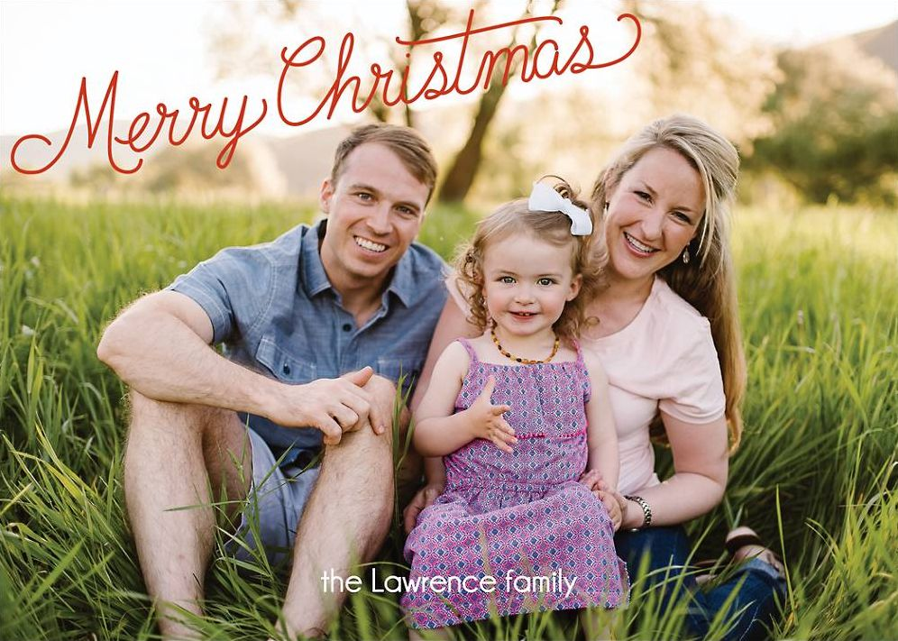 Let tidings of a merry Christmas ring from home to home in this tasteful holiday photo card.