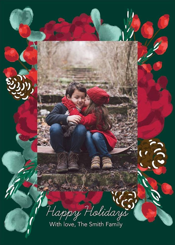 Deck the halls with the this merry card. ‘Tis the season to show off your picture-perfect blooms! Proudly designed by Paper Source. Printed on Mohawk 120.0 lb Superfine Ultra White. This paper is FSC certified, with 30% post consumer recycled content, and made using wind power. Please note: Due to the matte finish of our paper, photos may print slightly darker than they appear on your screen.