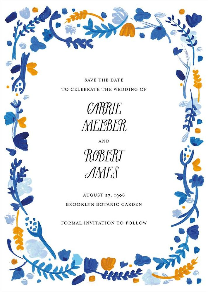 Give guests plenty of time to mark their calendars with these lovely Save the Date cards. Like the matching wedding invitation, this hand-painted design features a floral motif in shades of blue and yellow. Important details are perfectly framed in the middle.