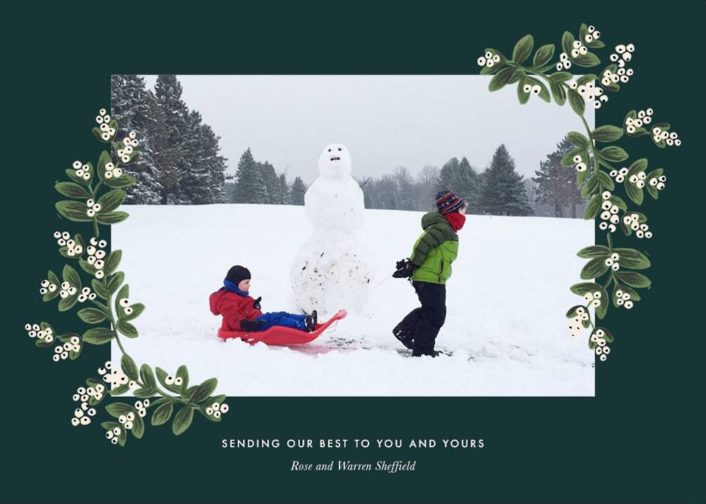 This Rifle Paper Co. for Paperless Post mistletoe bordered delight is the perfect frame for your family photo. Personalize this holiday card with a photo you love to share with the people you love.