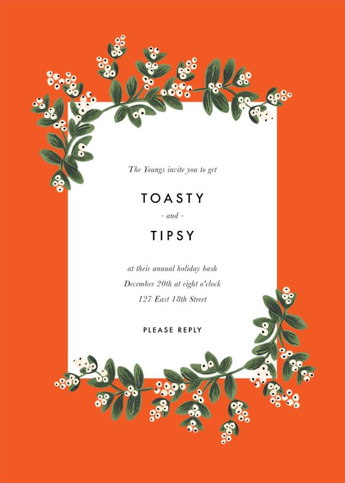 Invite your friends to get Toasty & Tipsy with you this holiday season! Send out these adorable Rifle Paper Co. for Paperless Post featuring a bright and bold border and dainty mistletoe accents.