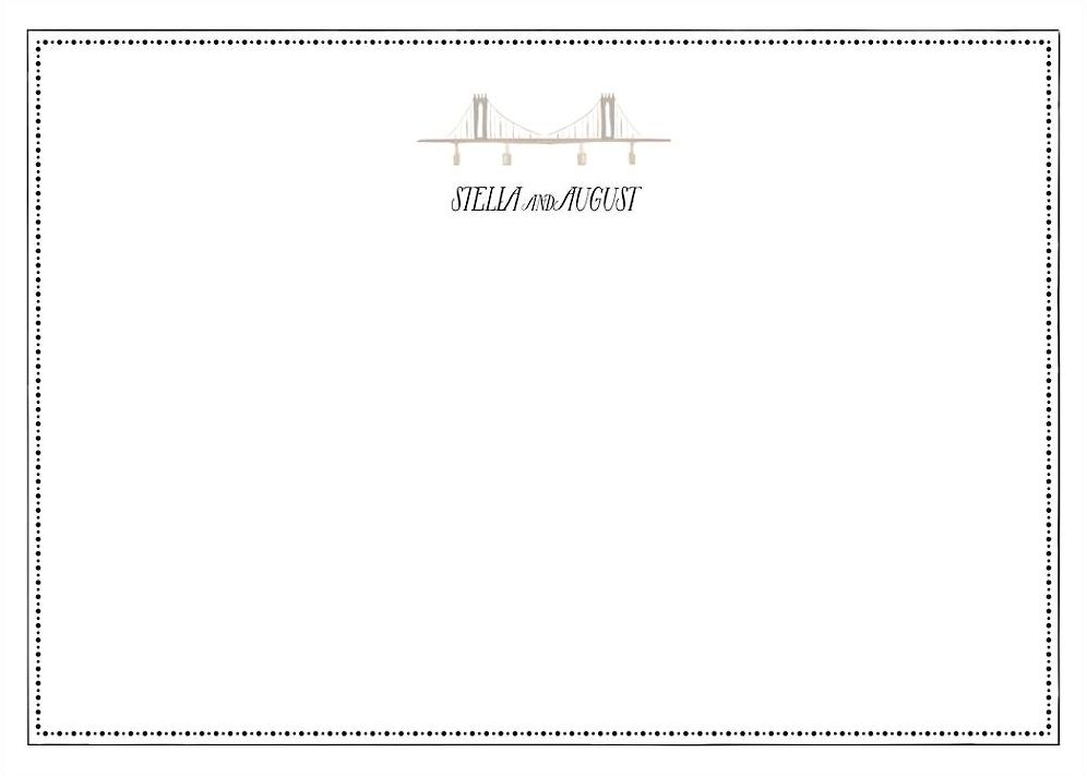 Order matching stationery to compliment your wedding invitation suite. In keeping with the Big Apple theme, hand-painted design of the Brooklyn Bridge across top and space for names below. Would make lovely thank you notes.